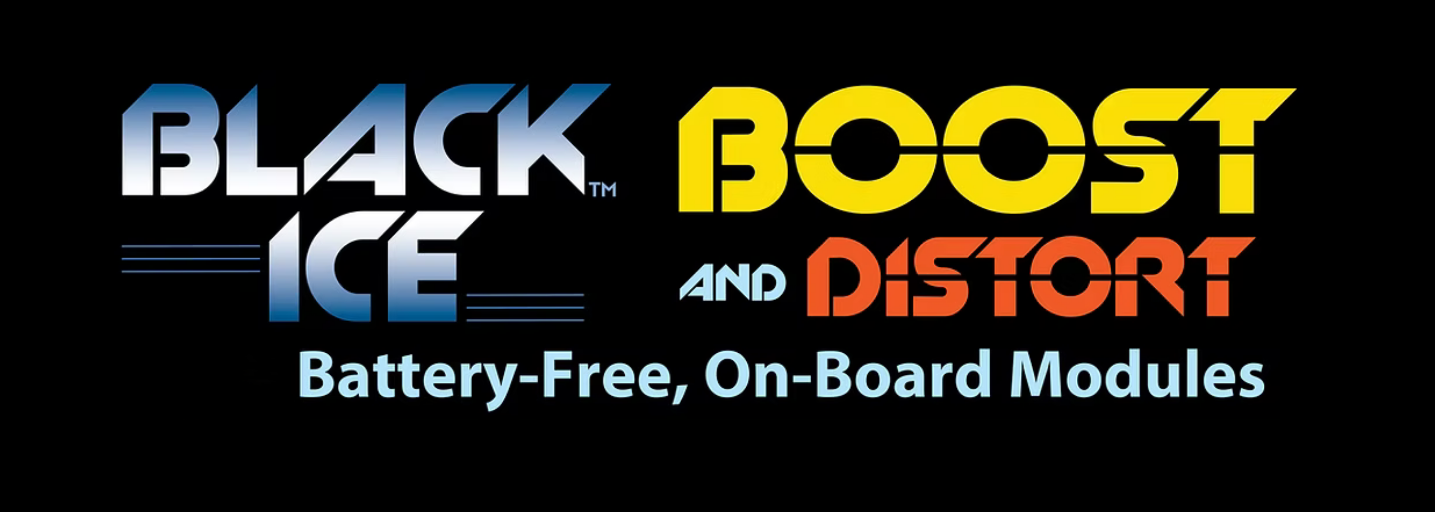 Black Ice Boost and Black Ice Distort are small, battery-free devices that can be easily installed in your guitar or bass. Use them separately or together to provide fingertip access to a variety of distorted, clean boost and dirty boost sounds, all without the need for a battery or any other power source. Black Ice products are compatible with all passive guitar pickups and electronics (not compatible with battery-powered active pickups).