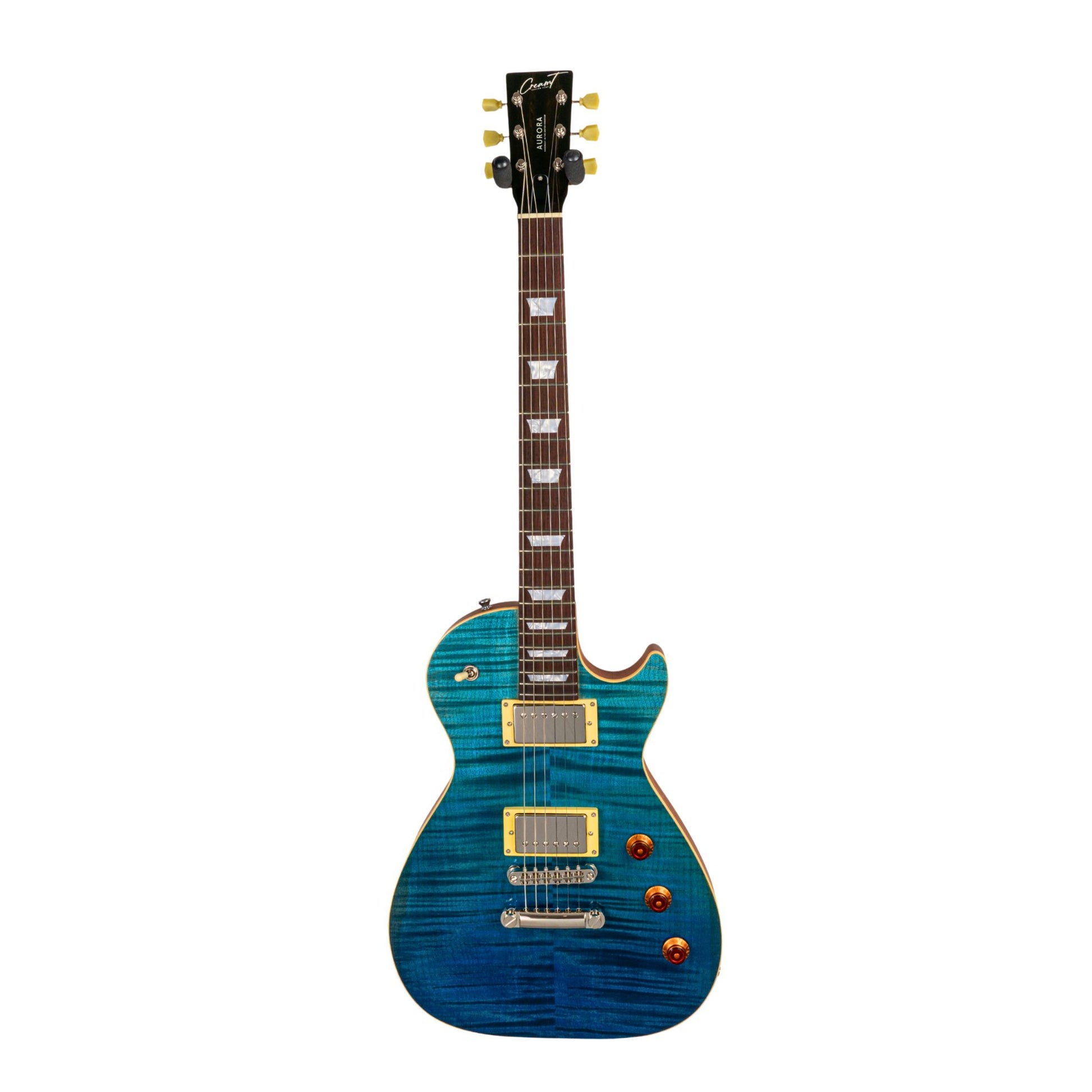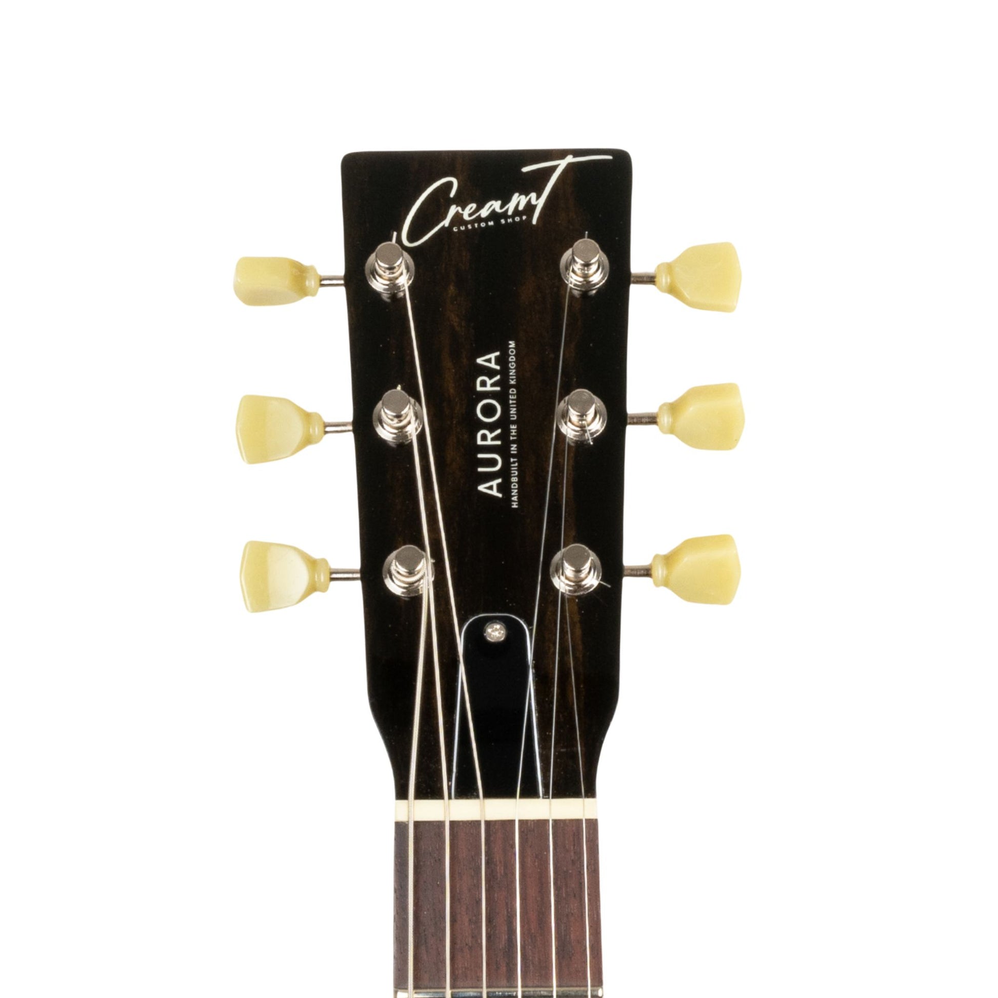 This is our custom version of the original Aurora designed by Billy F Gibbons. We added some more traditional features including a 3 way toggle switch, tune-o-matic bridge and stoptail. It comes with our Cream of the Crop humbuckers as standard.